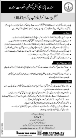 سندھ ہائر ایجوکیشن کمیشن کا “نیشنل پوسٹ ڈاکٹرل فیلو شپ پروگرام” کے تیسرے مرحلے کا اعلان، درخواستیں طلب